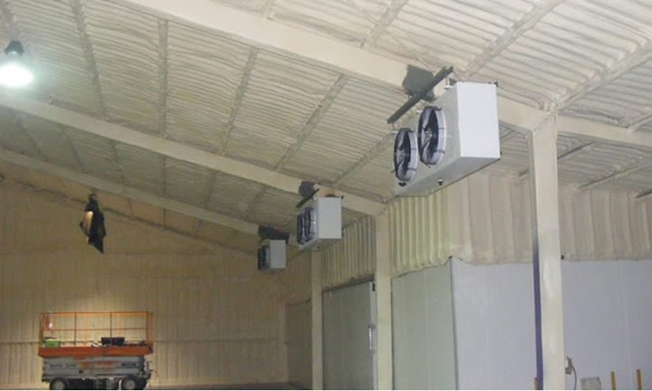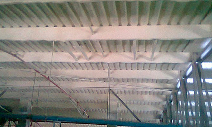 Servicio de PUR esprayado interior galpón, bajo plancha asbesto cemento, para T°+10°C.