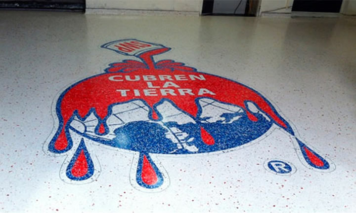 El piso Decorativo se ejecuta con Terrazo Apoxy, que es un sistema de pavimentación a base de resina que combina la apariencia altamente decorativa del mármol, con durabilidad, resistencia química y un mantenimiento fácil y de bajo costo. Este sistema ofrece posibilidades ilimitadas de color y diseño y es usado habitualmente en espacios públicos, donde la intensidad de uso es una condicionante.